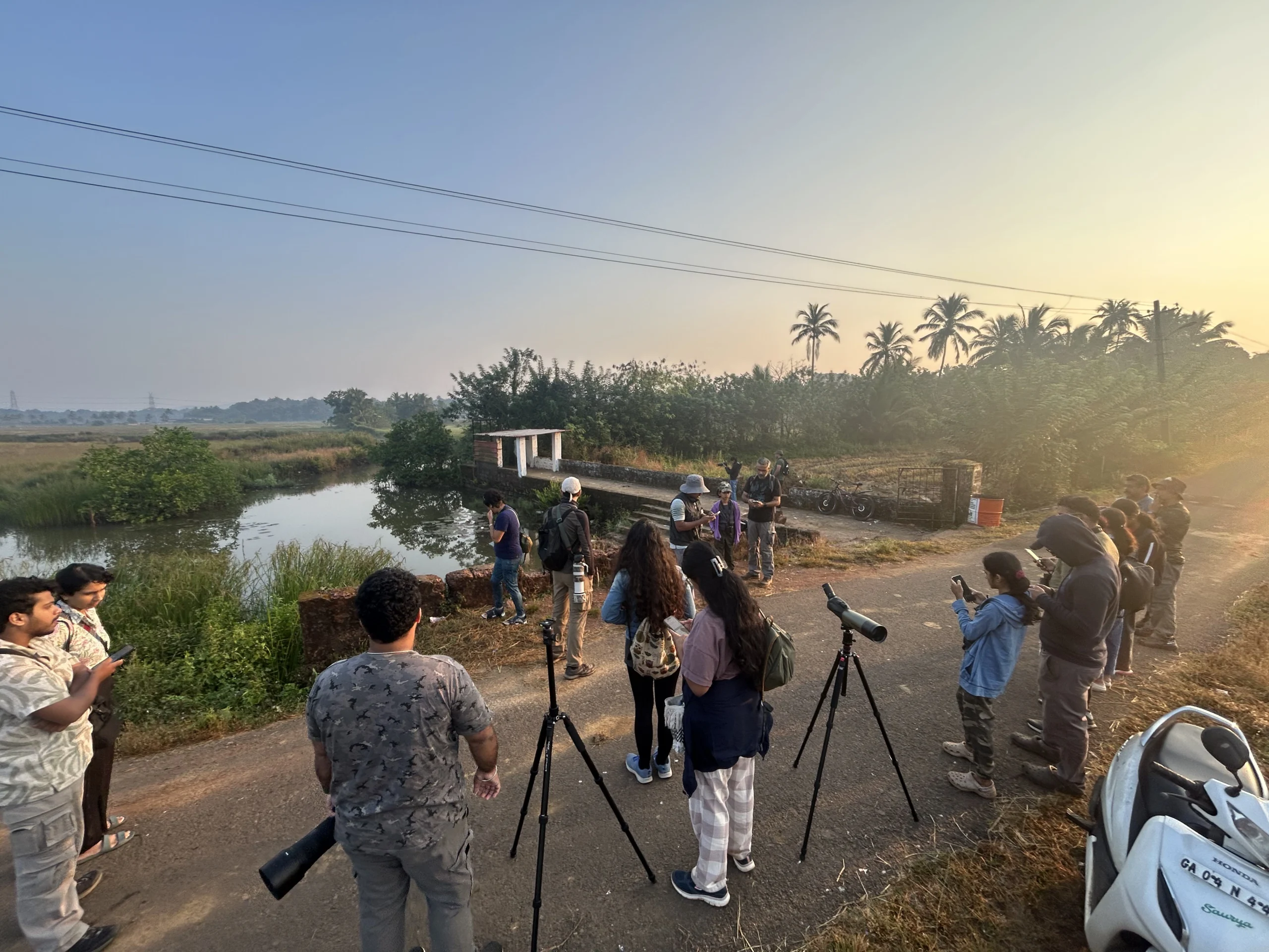 At Amona Fields, 20 participants embarked on an adventurous exploration through diverse habitats rich in birdlife. The group recorded an impressive 72 species, including highlights such as Lesser Adjutant, Yellow Bittern, Greater Spotted Eagle, Western Marsh Harrier, Malabar Grey Hornbill, Vernal Hanging Parrot, and an extraordinary sighting of 200 Baya Weavers. Binoculars and spotting scopes helped participants enjoy detailed views of these spectacular species.