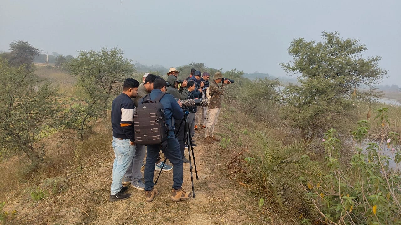 The bird walk at Badhani Dam, Adsena led by Jageshwar Verma, with 13 participants exploring the wetland and surrounding habitats. During the walk, a total of 66 bird species were recorded, reflecting the rich diversity of the area. However, participants observed that duck species were seen in very low numbers, possibly due to fishing nets spread across almost the entire dam by fishermen, which may have disturbed waterfowl movement and habitat use. This observation also sparked meaningful discussions about the impact of human activities on wetland ecosystems.