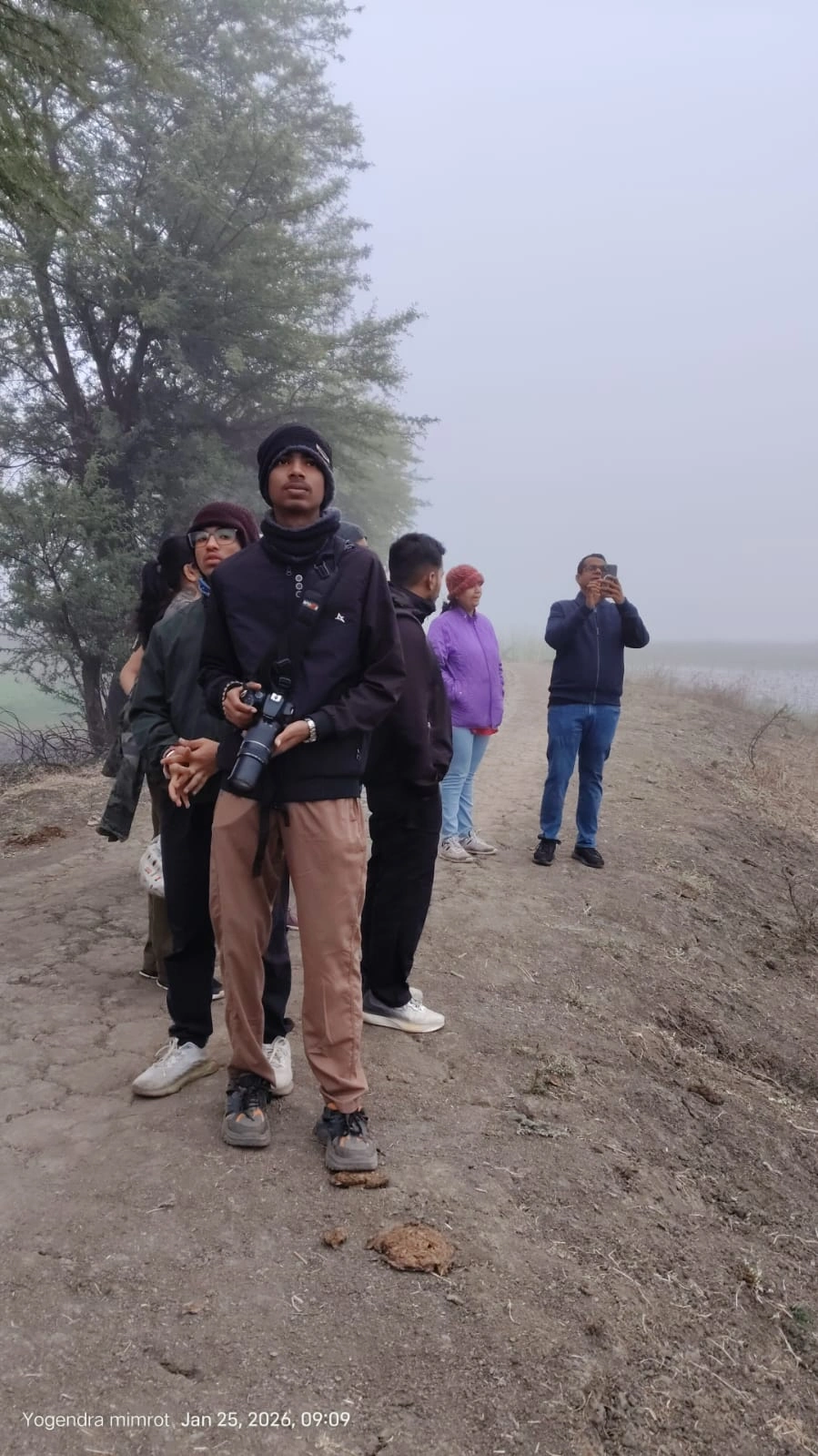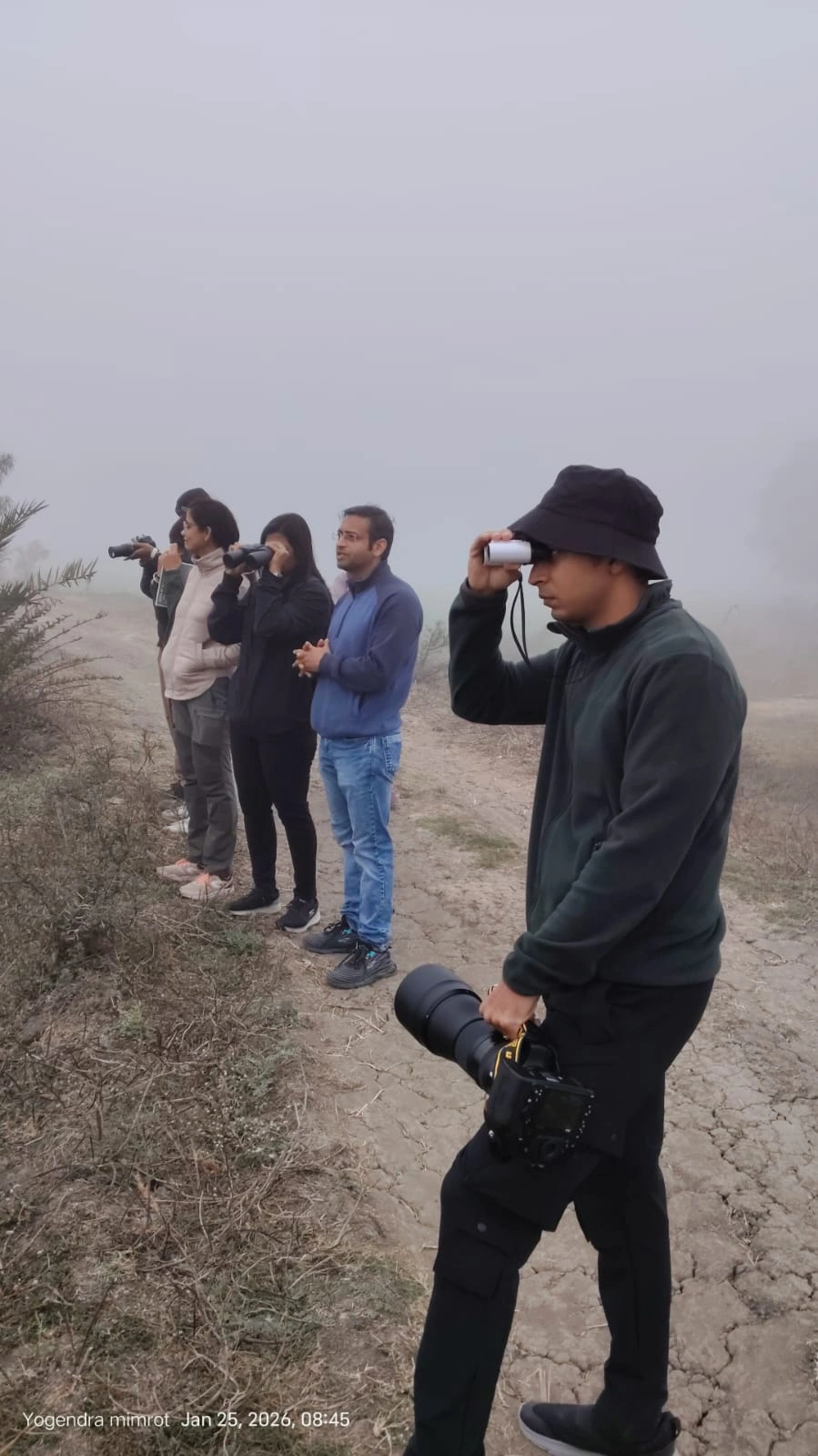 A bird walk was conducted at Daulat Baroda Lake, led by Yogendra Kumar Mimrot in collaboration with MP Tourism, with 11 participants. The morning was marked by dense fog caused by a western disturbance across the city, which significantly reduced visibility and made birding a bit challenging. Despite this, the group remained engaged and patient, using the conditions as an opportunity to focus on calls, movement, and habitat cues while learning about wetland and grassland ecosystems.