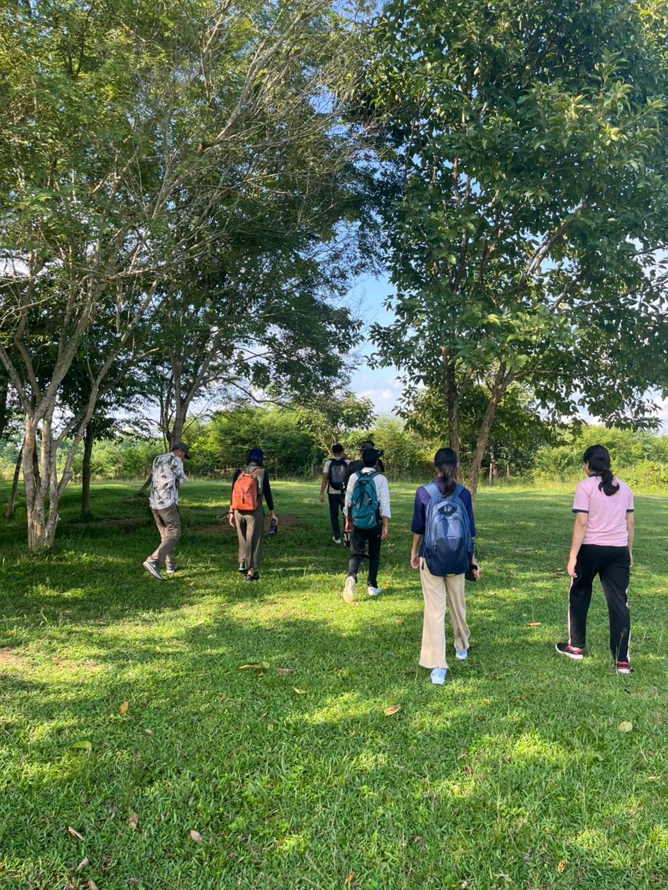 During the walk, the group recorded an impressive 39 bird species, including waterbirds like Lesser Whistling Duck, Eurasian Moorhen, Asian Openbill, Bronze-winged Jacana, and Black-crowned Night Heron, as well as woodland species such as Asian Barred Owlet, Asian Green Bee-eater, Yellow-footed Green Pigeon, Indochinese Roller, Blue-throated Barbet, Black-hooded Oriole, Grey-headed Canary Flycatcher, and Taiga Flycatcher. The combination of diverse sightings, multilingual guidance, and hands-on learning made it a memorable and enriching morning for all participants.